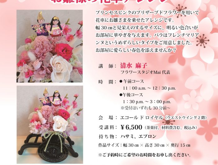 「気軽に楽しむ」「お花の資格をとる」「洋風生け花をやってみる」「ブライダルのお花を作る」「自分のスクールを持ちたい」貴方のライフスタイルに合ったコースをお選び下さい。